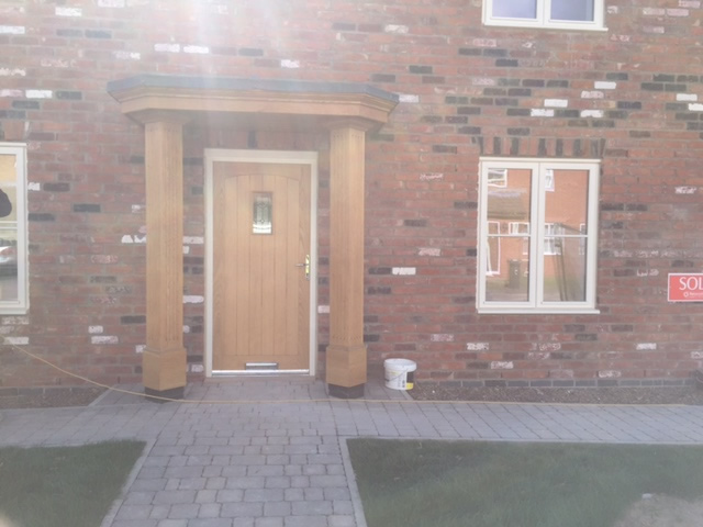 A selection of porches on the ongoing St Johns site in Lincoln. This group of porches are made from Green Oak and European Oak finished in Danish Oil.